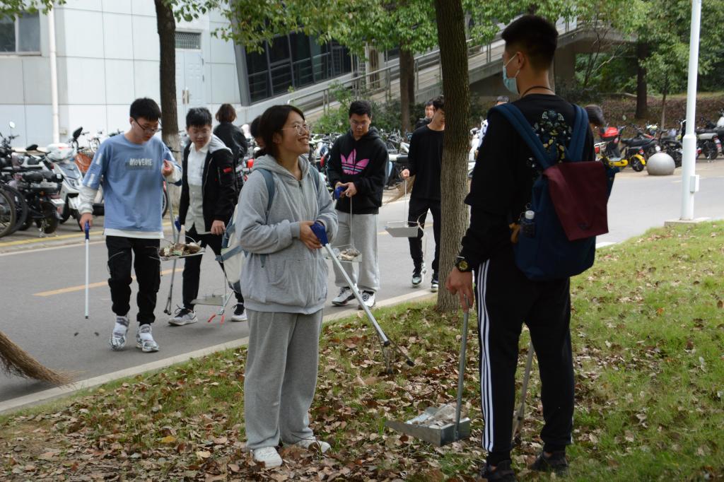 10月9日下午,海燕策略研究线路一组织学生开展“绿色校园 你我共建”清扫校园环境卫生活动,对第三教学楼附近区域进行清扫。