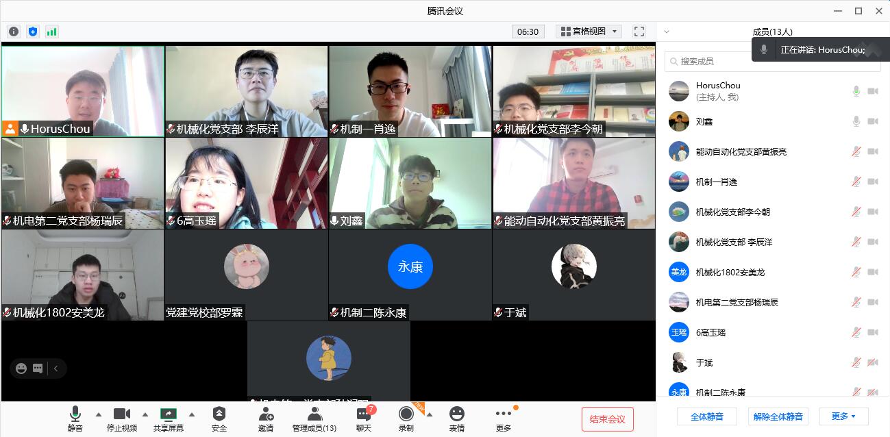 寒假已经过半,针对党员们在家中开展的学习实践,周熙也对此进行了说明和要求。他表示,广大党员要在做好自身防疫工作的基础上,力所能及的开展疫情防控、春耕帮扶等志愿公益实践活动;同时,要积极响应学校“四史”学习“四个一”活动,将学习落实于每天、每周、每月,而不是最终上交一份思想汇报即可,可依托学院“明理书苑”这一学习交流分享平台,坚持每日打卡,和其他人共同分享学习成果,既是加强了自我监督管理,又对活动的前中期进行了良好宣传。同时,各党支部也要对本支部的学习实践成果、优秀工作案例等进行归纳总结,学院也会积极进行推广和宣传。