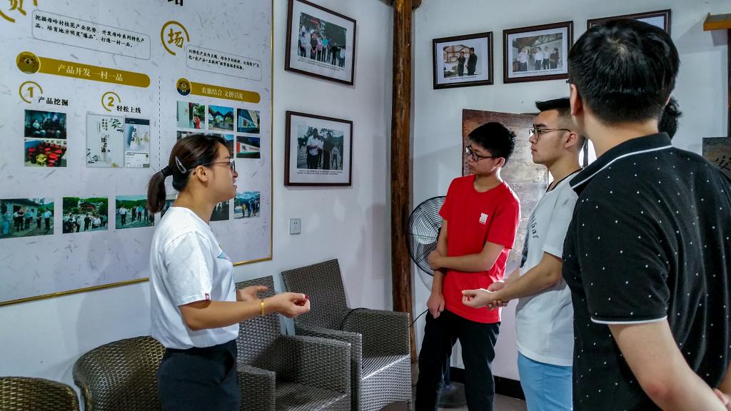 实践团在村委会了解到,母岭村实行党建带头,围绕乡村振兴战略目标,借助安厨电子商务公司的电商宣传,发展母岭村特色桂花系列产品的发展模式。并且取得了巨大的成效,不仅还清了母岭村之前的债务,还让母岭村开始走上了致富的道路。实践团先参观了村里的文化礼堂,在那里,负责人播放视频并介绍了母岭村的发展过程。母岭村最开始靠着卖桂花苗生活,但是后来市场饱和,桂花苗价格下跌,村集体收入一下子大大缩减,村里也开始了越来越多的负债。但是为了母岭村村民的美好生活,书记顶着巨大的压力,组织党员带头,做起了母岭村村民们家家都会做的桂花酒、桂花糕等桂花产品,多元化发展的桂花产品拯救了母岭村。